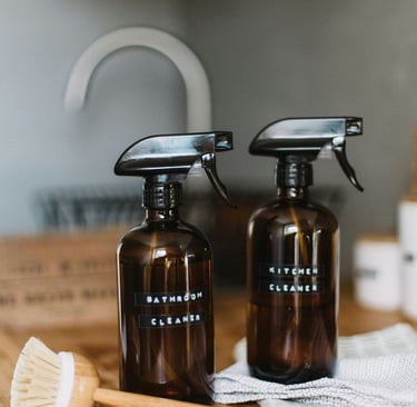 Bathrooms: Cleaning mirrors, sinks, toilets, showers, tubs, and outside of cabinets & drawers
